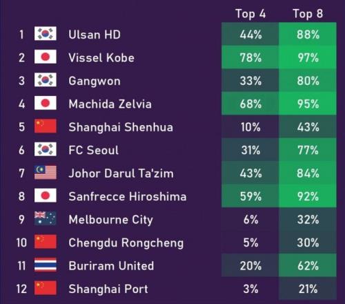 亚冠专业数据机构FootyRankings对东亚区的出线概率进行了专业预测。这份数据揭示了中超球队面临的残酷现实,上海申花尽管排名靠前,但其晋级前八的概率仅有43%,这意味着申花大概率将被淘汰。进入前四的希望更是微乎其微。成都蓉城出线概率仅为30%,在与日韩泰马等国强队的竞争中,蓉城已处于绝对劣势。上海海港作为中超的传统强队,海港以垫底的排名和21%的最低出线概率,基本宣告了他们的亚冠精英联赛之旅前景黯淡。