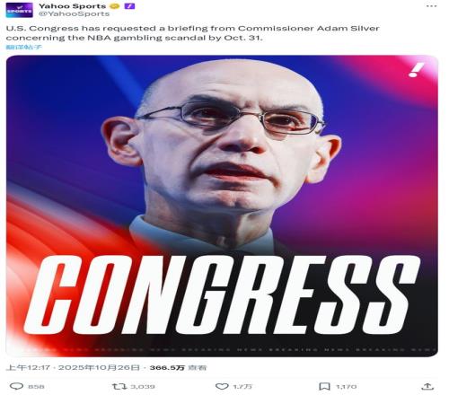 北京时间10月26日,据雅虎体育报道,美国国会下属的众议院能源与商业委员会,针对NBA最近一系列的赌博丑闻展开调查:NBA总裁亚当-萧华必须在10月31日之前,对此事作出汇报。萧华回应,自己对该指控“深感震惊和不安”。