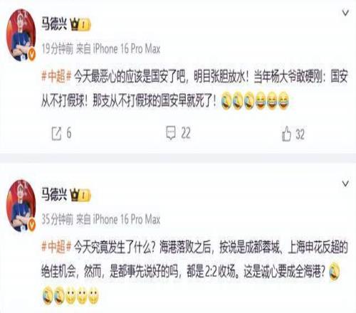 随后,马德兴老师又重点点名了北京国安,怒斥国安踢得恶心:“今天最恶心的应该是国安了吧,明目张胆放水!当年杨大爷敢硬刚:国安从不打假球!那支从不打假球的国安早就死了!”