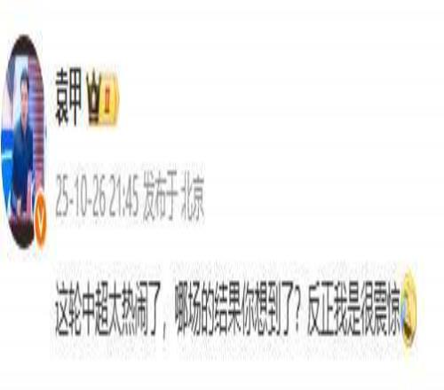 另一位著名足球记者袁甲老师则是直言震惊:“这轮中超太热闹了,哪场的结果你想到了?反正我是很震惊。”