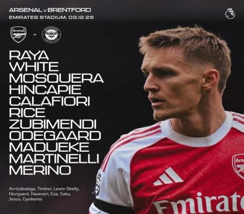 北京时间12月4日3:30,英超第14轮,阿森纳主场对阵布伦特福德。赛前首发公布。